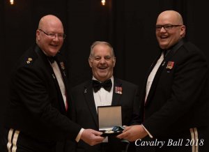 Le 20 octobre 2018, l’adjudant-chef (à la retraite) Donald Greene a reçu le titre de grand ami du régiment pour son service volontaire de plus de 24 ans, en tant que principal responsable et conservateur du musée du Royal Canadian Hussars Museum, en tant membre de l’exécutif de l’Association du Royal Canadian Hussars, et trésorier de l’Institut de cavalerie de Montréal. Il a transféré au régiment à titre de sergent-major régimentaire en 1993, après avoir passé 32 ans dans la Force régulière. Il a assumé la responsabilité du musée en 1994 et a immédiatement commencé à l’améliorer. Il a changé les présentoirs pour les concentrer davantage sur l’histoire de l’unité, et a remis à neuf les cadres, les vitrines et les salles elles-mêmes. Il a convaincu les membres de l’association et d’autres personnes de faire don de souvenirs, d’objets, de fonds, de vitrines et d’autres objets utiles au musée. Il a apporté de nombreuses améliorations aux dispositifs d’affichage et s’est rendu disponible pour accueillir de nombreuses visites, dont celle du nouveau colonel en chef du régiment, qui est resté 45 minutes au lieu des 10 minutes allouées à sa visite. Don a fourni un service précieux au régiment en aidant à préserver son histoire de manière à ce qu’il puisse être apprécié par les générations passées, actuelles et futures de hussards, amis du régiment et membres du public.